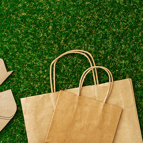 Sustainable technology and processes. Reusable and 100% recyclable bags.